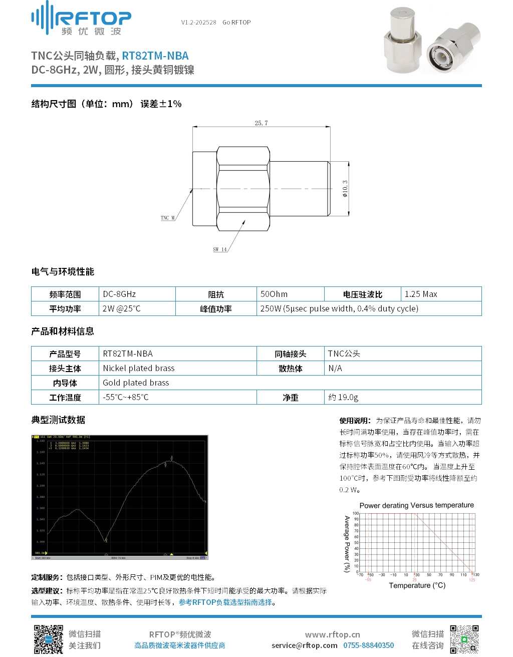 • 商品名称:TNC公同轴负载, DC-8GHz, 2W, 圆形, 接头黄铜镀镍 - RT82TM-NBA