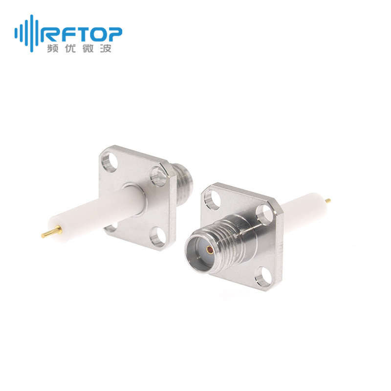 • 商品名称:SMA母四孔法兰介质穿墙连接器, DC-26.5GHz, 安装孔距8.6mm - RC27SF-PF4D01-XX