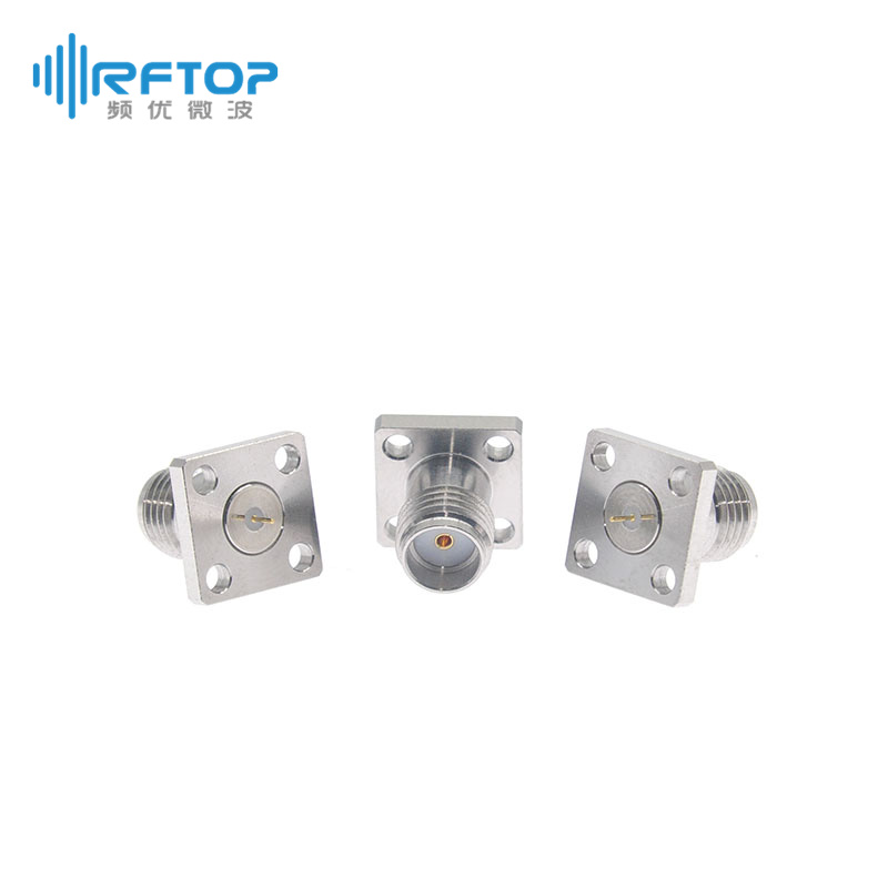 SMA母四孔法兰空气线穿墙连接器, DC-26.5GHz, 安装孔距6.35mm - RC27SF-AF4D02-XX