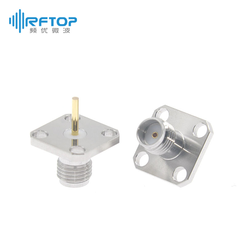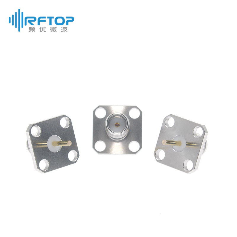 SMA母四孔法兰空气线穿墙连接器, 无接触环, DC-26.5GHz, 安装孔距8.6mm - RC27SF-AF4D51-XX