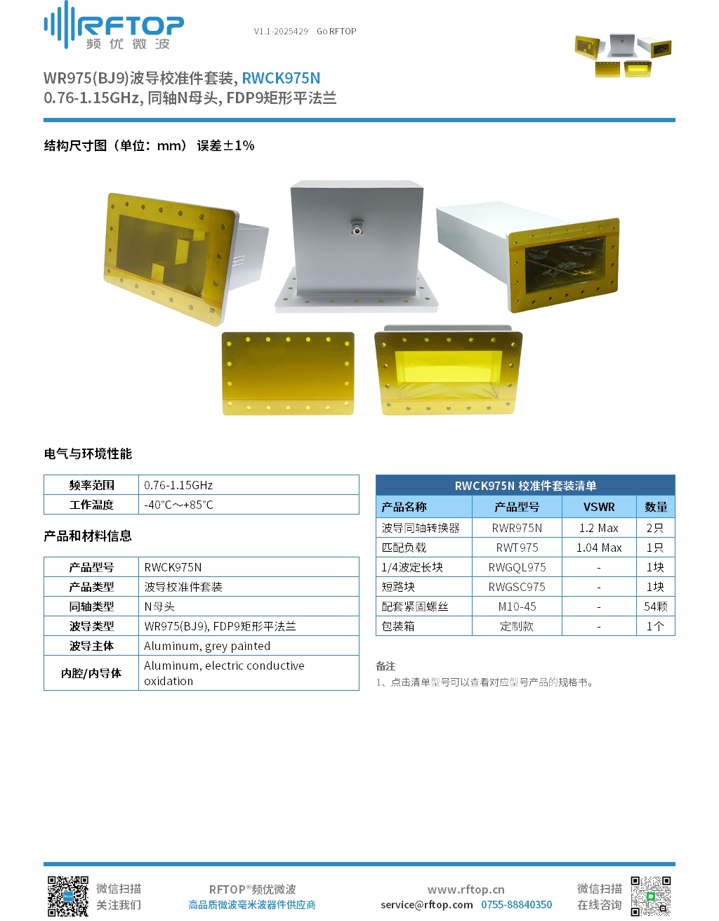 • 商品名称:WR975(BJ9)波导校准件套装, 0.76-1.15GHz, 同轴N母 - RWCK975N