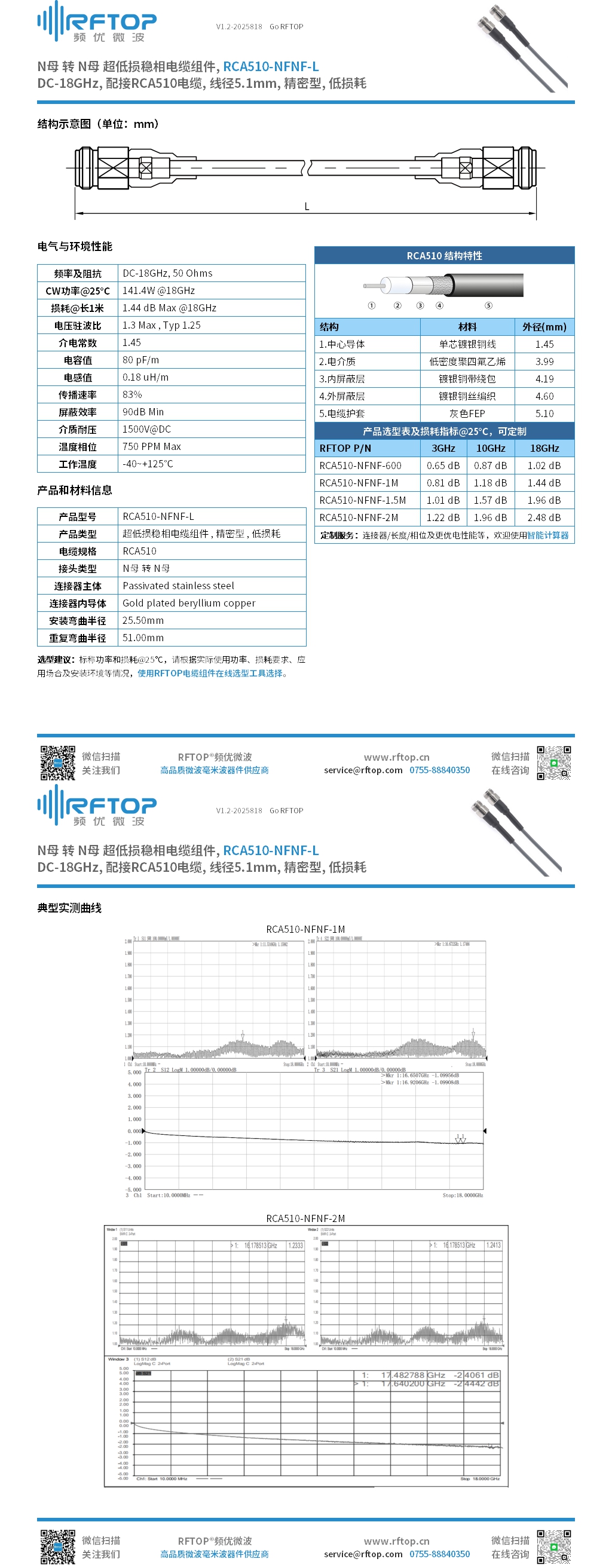 • 商品名称:N母 转 N母 超低损稳相电缆组件|精密型, 低损耗, DC-18GHz, 配接RCA510电缆, 线径5.1mm - RCA510-NFNF-L