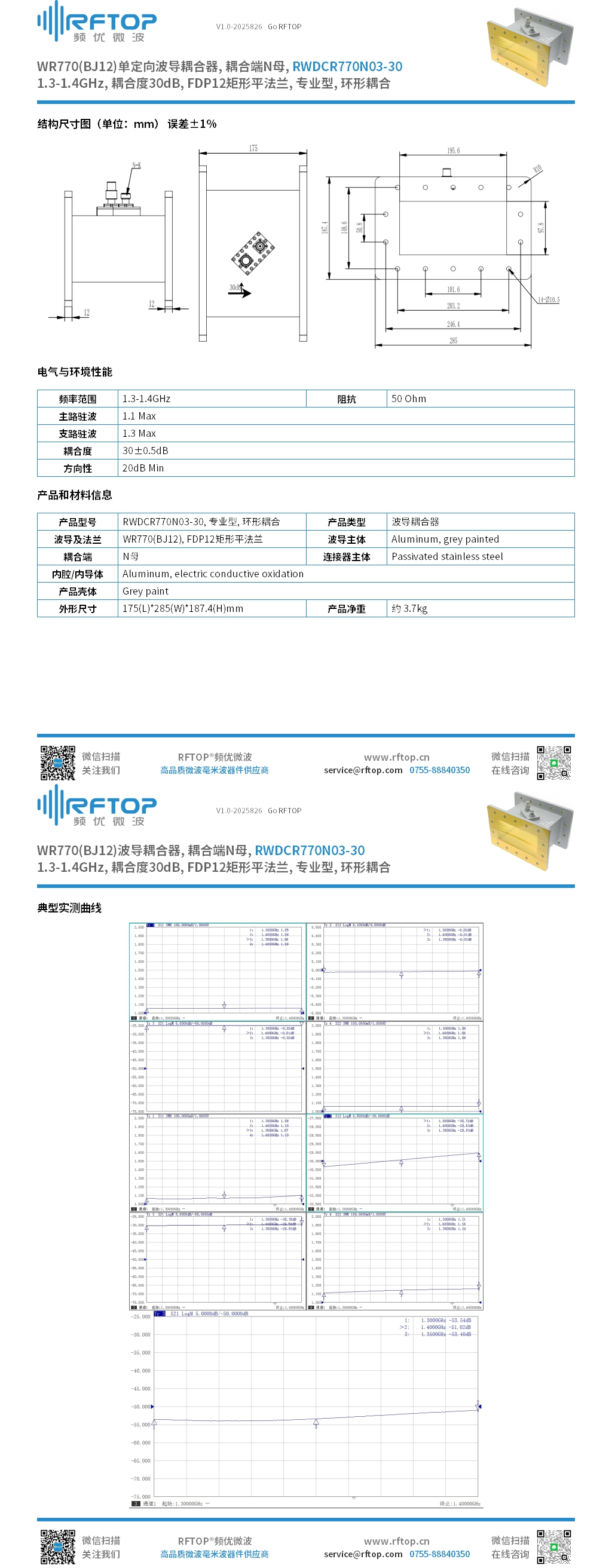 • 商品名称:WR770(BJ12)单定向波导耦合器|专业型, 环形耦合, 耦合端N母, 1.3-1.4GHz, 耦合度30dB, FDP12矩形平法兰 - RWDCR770N03-30