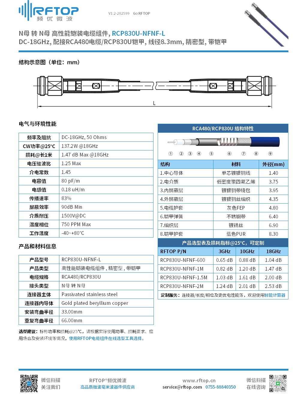 • 商品名称:N母 转 N母 高性能铠装电缆组件|精密型, 带铠甲, DC-18GHz, 配接RCA480电缆/RCP830U铠甲 , 线径8.3mm - RCP830U-NFNF-L