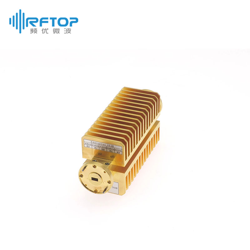 WR19(BJ500)中功率毫米波波导固定衰减器|专业型, 双向, FUGP500圆形法兰, 矩形, 波导主体铜镀金, 39.2-59.6GHz, 50W - RWA1950A-XX