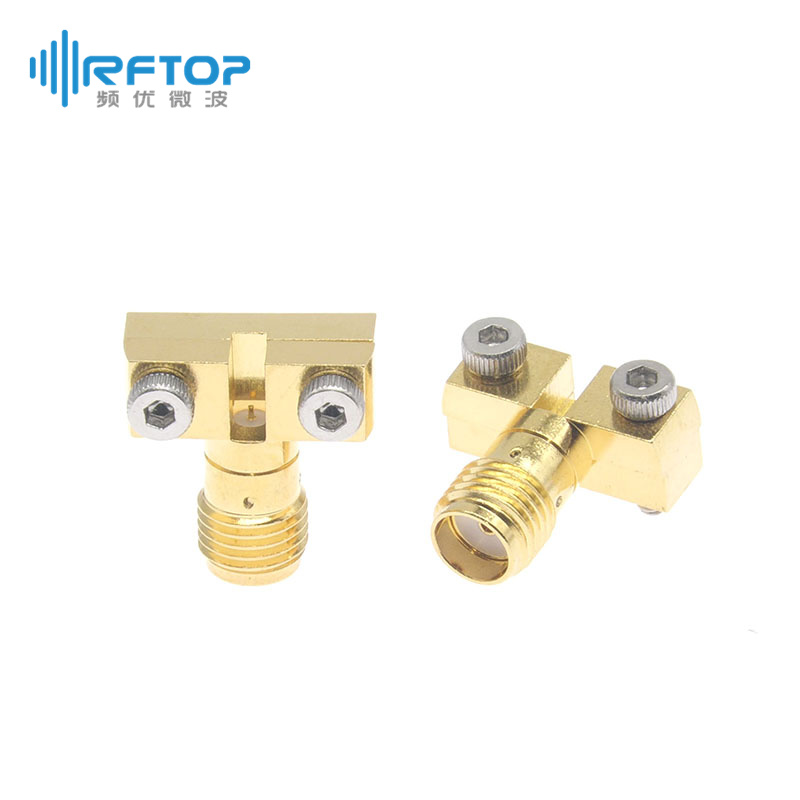 SMA母双孔法兰PCB端接免焊连接器, DC-26.5GHz, 安装孔距9.5mm, PCB板厚小于3mm, 尾针直径00.35mm, 内外导体均免焊 - RC27SFB-EL035