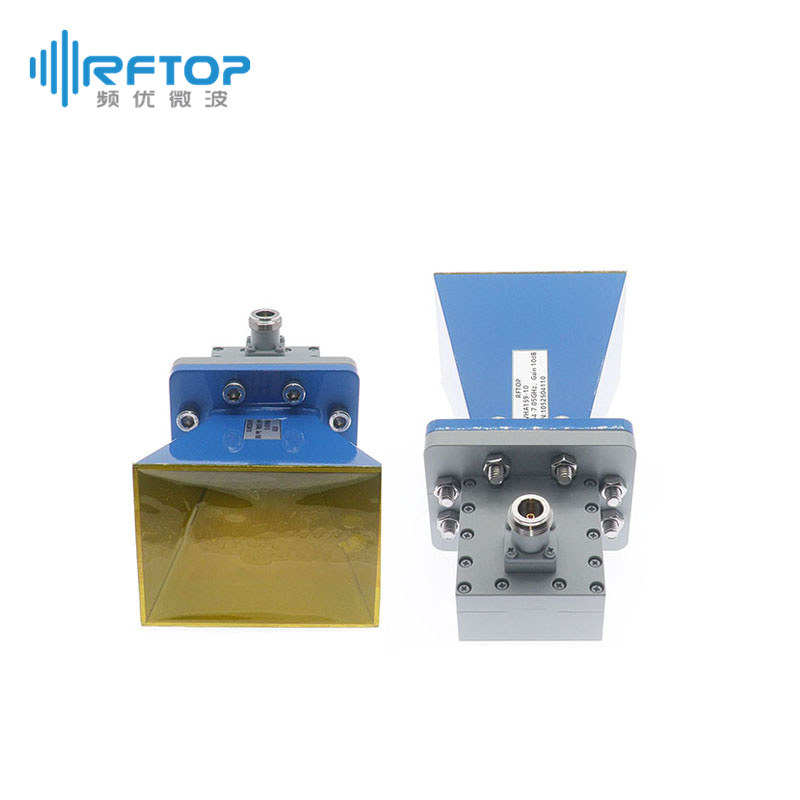 WR159(BJ58)标准增益喇叭天线|专业型, 同轴N母输入, 4.64-7.05GHz, 增益10dB, FDP58矩形平法兰, 正交 - RWHA159N-10