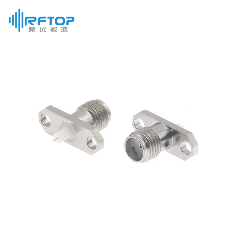 SMA母双孔法兰介质穿墙连接器, DC-18GHz, 安装孔距12.2mm, 尾针直径00.25mm - RC18SF-PF2D025