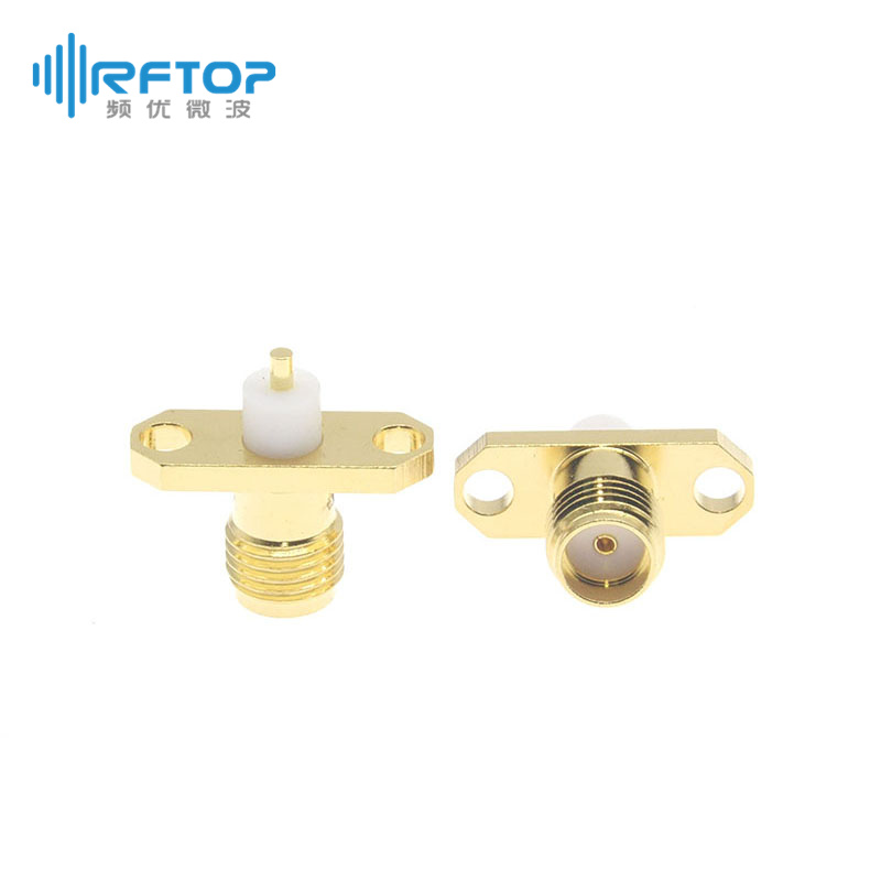 SMA母双孔法兰介质穿墙连接器, DC-18GHz, 安装孔距12.2mm, 尾针直径1.27mm - RC18SFB-PF2D127