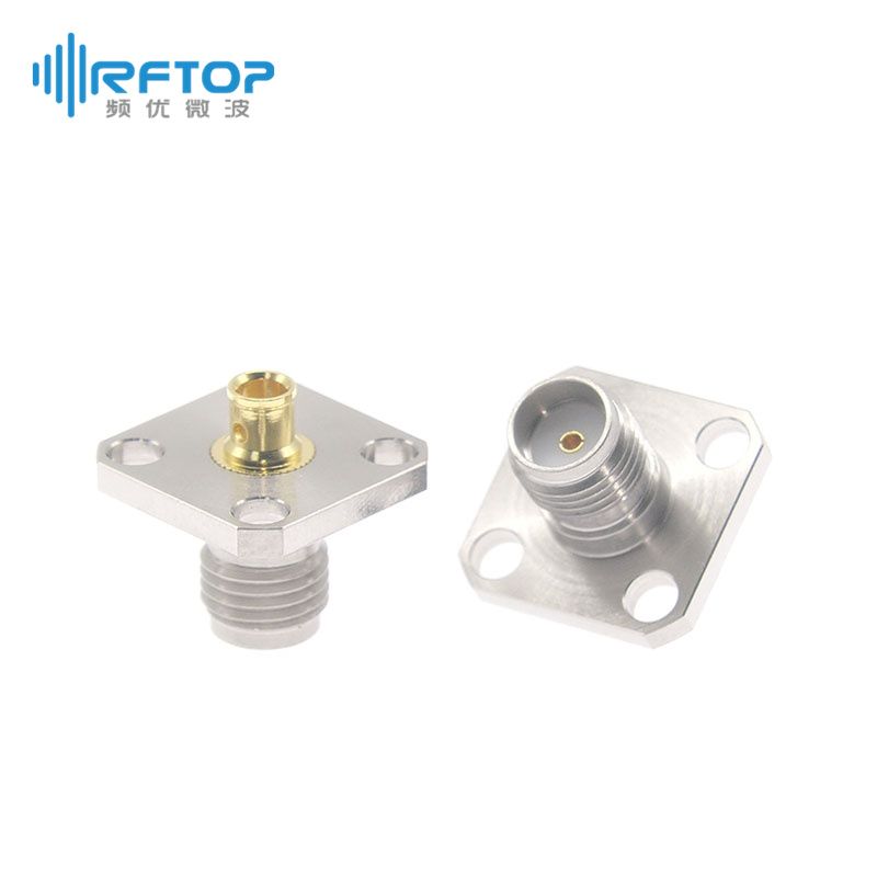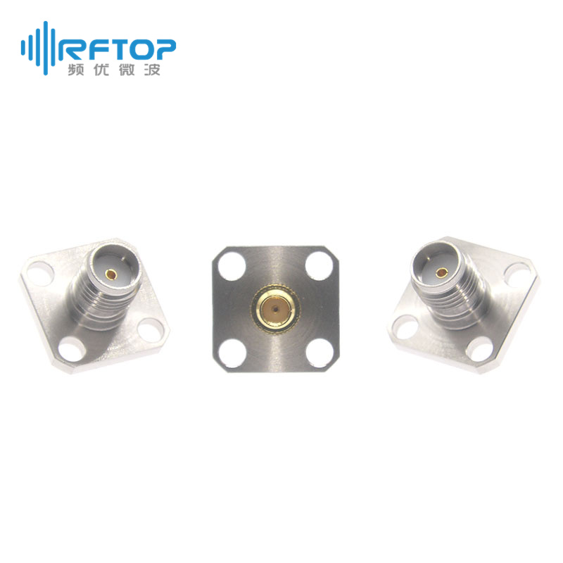 SMA母四孔法兰电缆连接器|精密型, DC-26.5GHz, 法兰边长12.7mm,孔距8.6mm,孔径2.6mm - RC27SF-B4F2D
