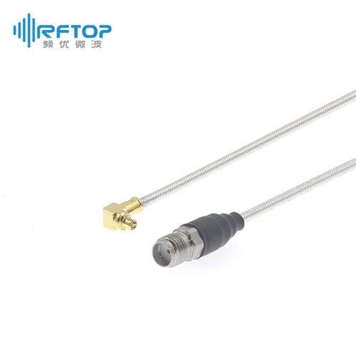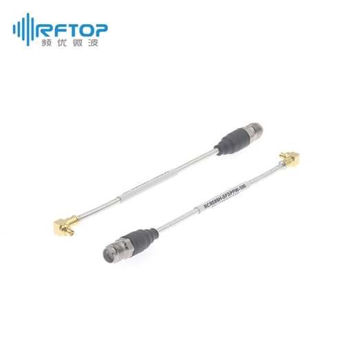 SMA母转SSMP(GPPO,SMPM)直角90度弯母 半柔电缆组件|超优级(Ultra), DC-26.5GHz, 配接RCR086H电缆, 线径2.16mm - RCR086H-SFSPFW-L
